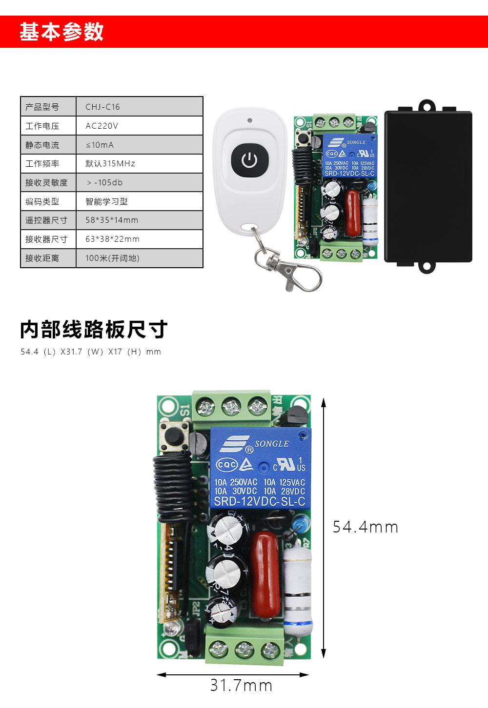 CHJ-C16配100-1新白壳    单路门禁遥控开关